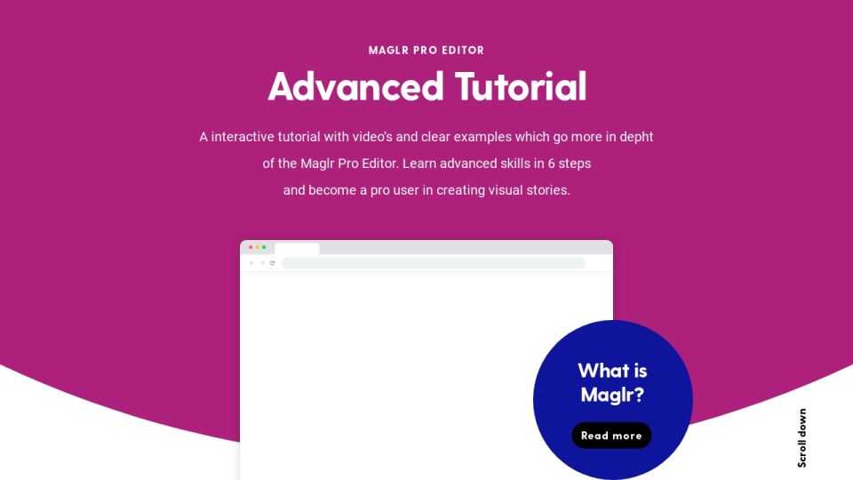 A interactive tutorial with video’s and clear examples which go more in depht of the Maglr Pro Editor. Learn advanced skills in 6 steps