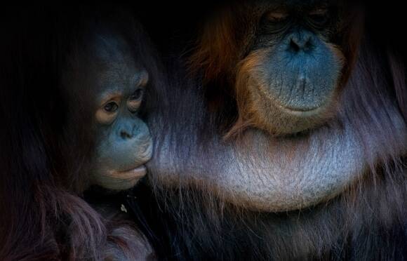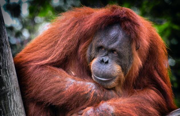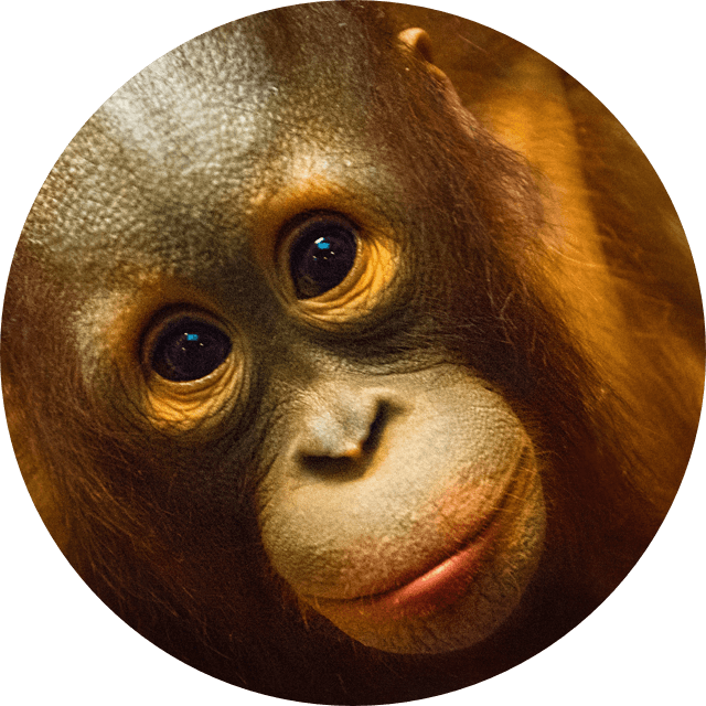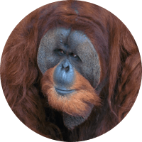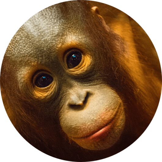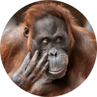 This large, gentle red ape is one of humankind’s closest relatives. Indigenous peoples of Indonesia and Malaysia call this ape “orang-hutan” literally translating into English as “people of the forest.”