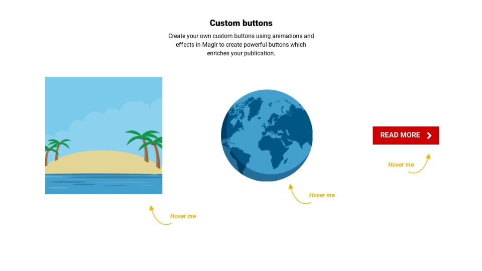 Create your own custom buttons using animations and effects in Maglr to create powerful buttons which enriches your publication.