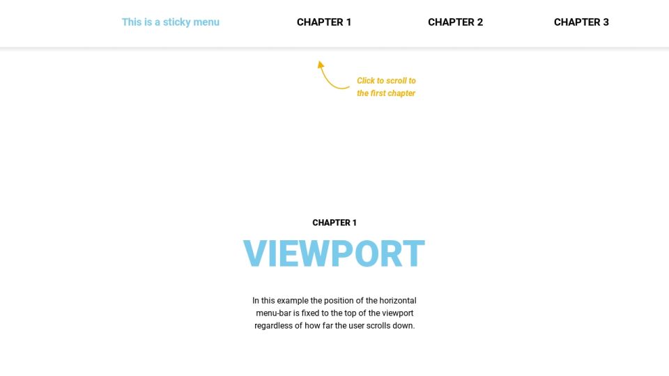 In this example the position of the horizontal menu-bar is fixed to the top of the viewport regardless of how far the user scrolls down.