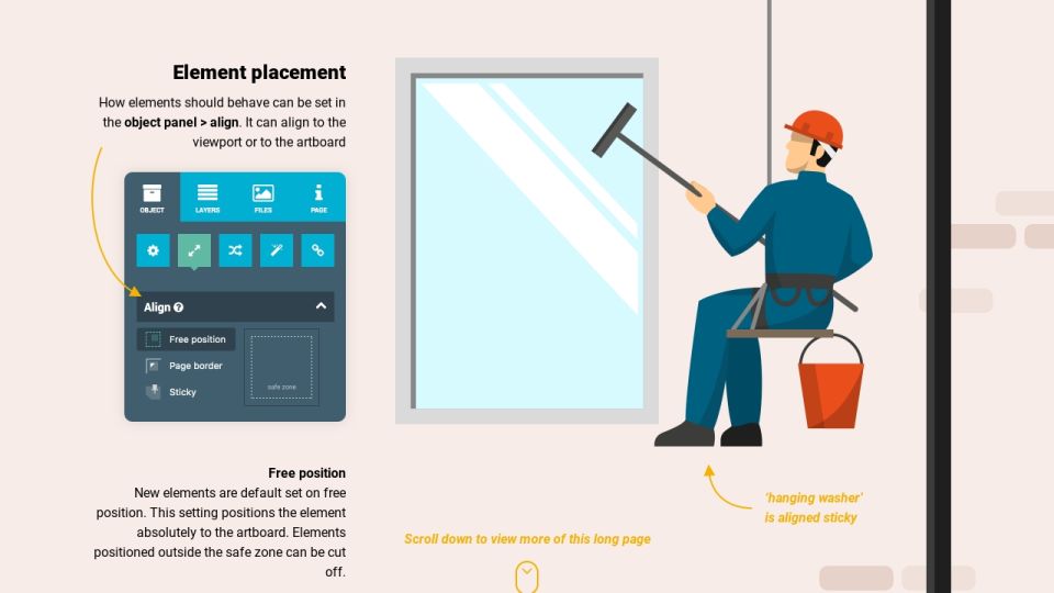 Positions an element absolutely to the viewport, which stays inside the viewport while scrolling. Sticky alignment is only available when the viewport of the artboard is set to Longpage.